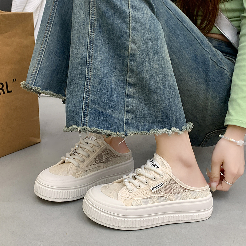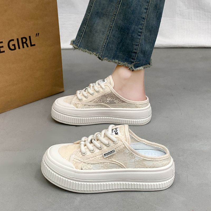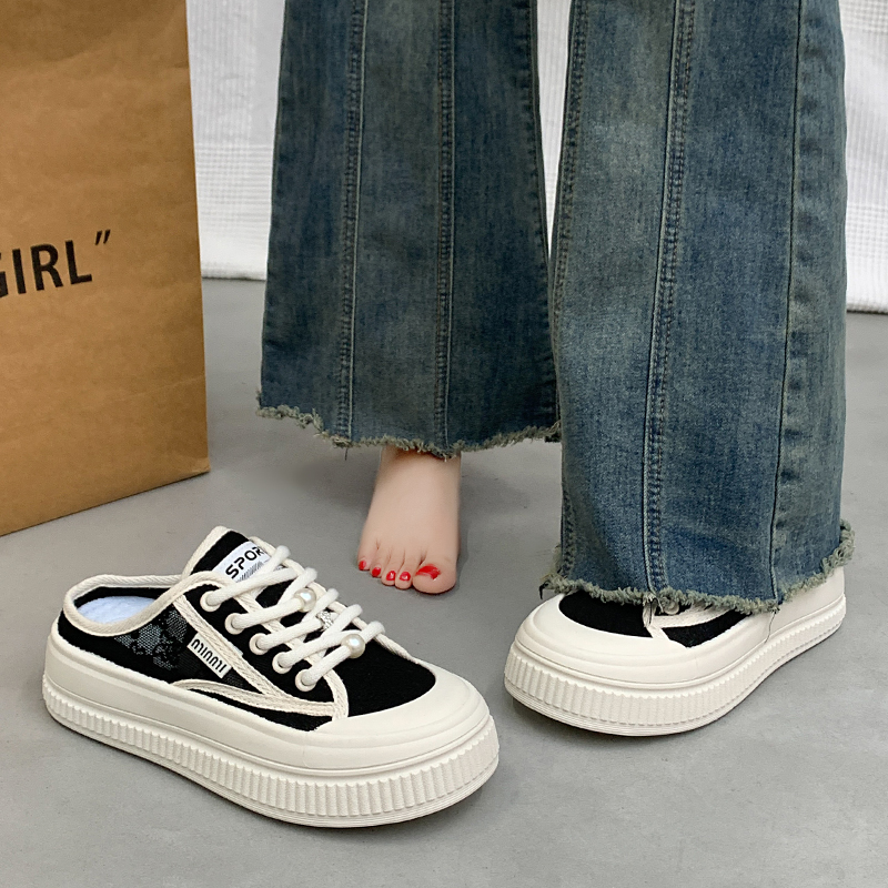 不累脚渔夫板鞋 女夏外穿一脚蹬凉拖34码 踩屎感孕妇包头半拖鞋 女鞋