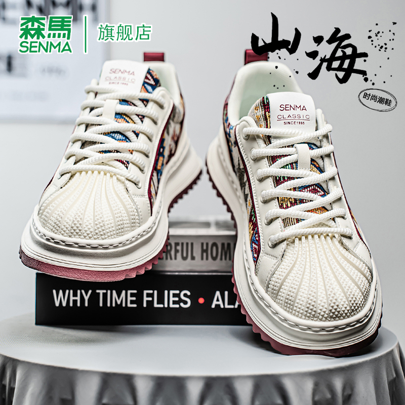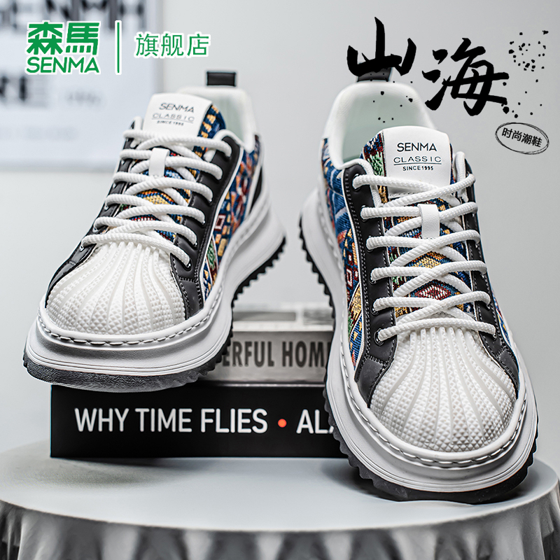 青少年增高厚底轻便皮面小白鞋 森马男鞋 百搭休闲板鞋 新款 2025秋季