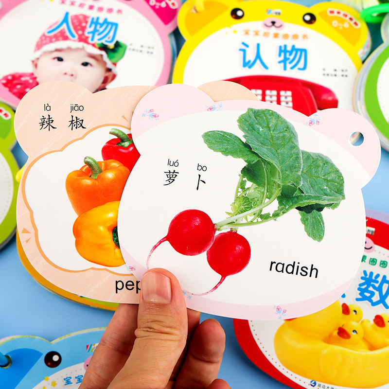 幼儿早教启蒙认知翻翻书全8册宝宝亲子互动认知书籍硬壳纸撕不烂圈圈书认数儿歌人物动物蔬菜水果大图大字0 6岁儿童认知翻翻书