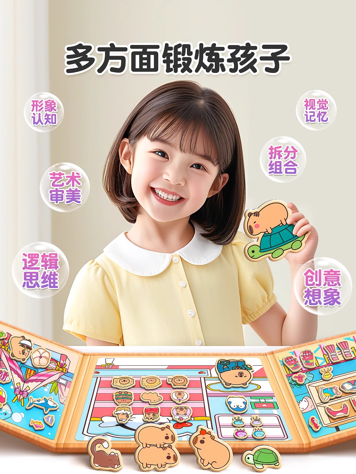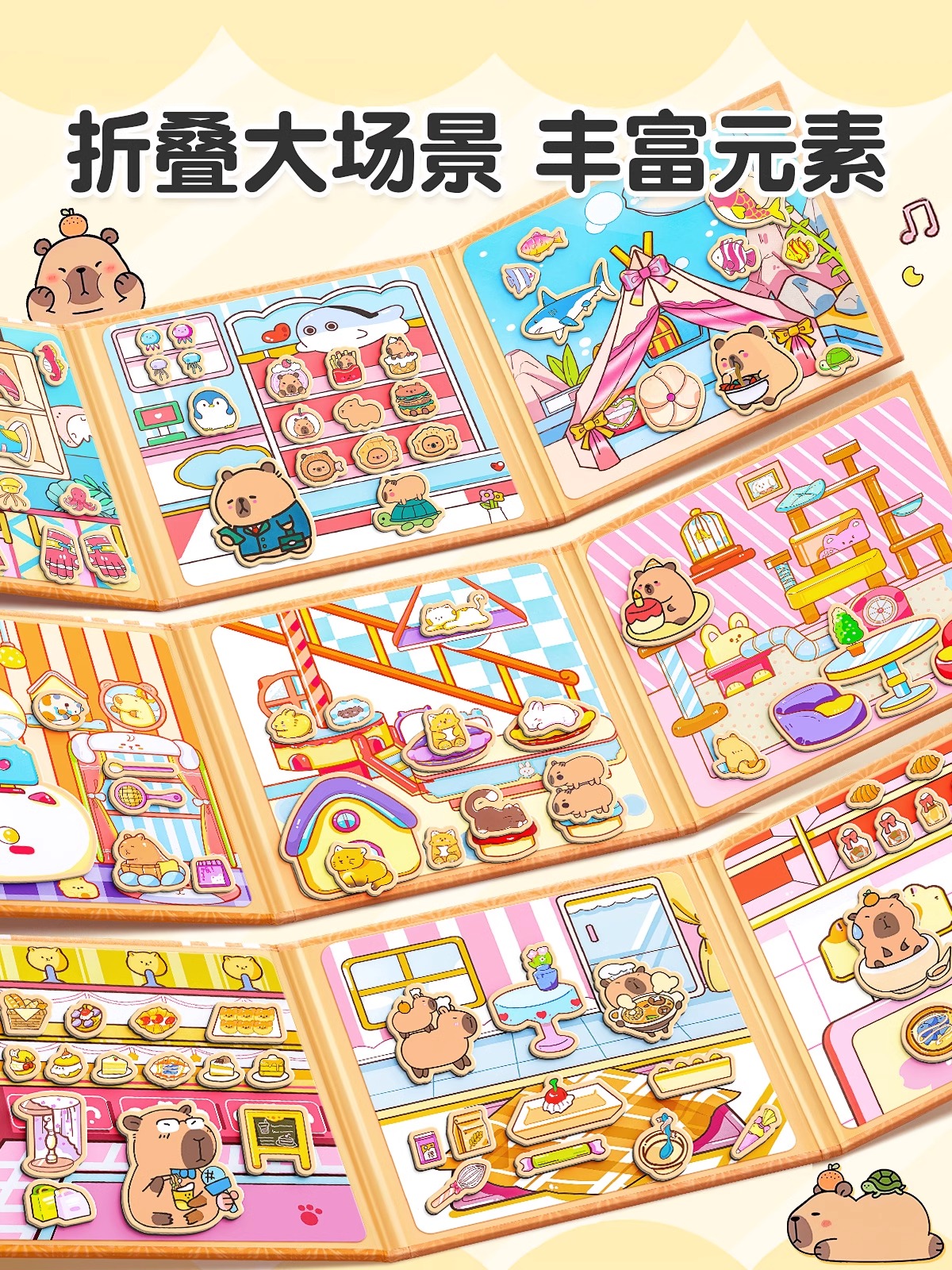 安静书卡皮巴拉磁力安静书新款 磁吸贴纸书 免裁剪儿童玩具手工换装
