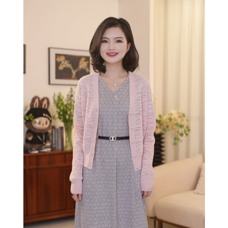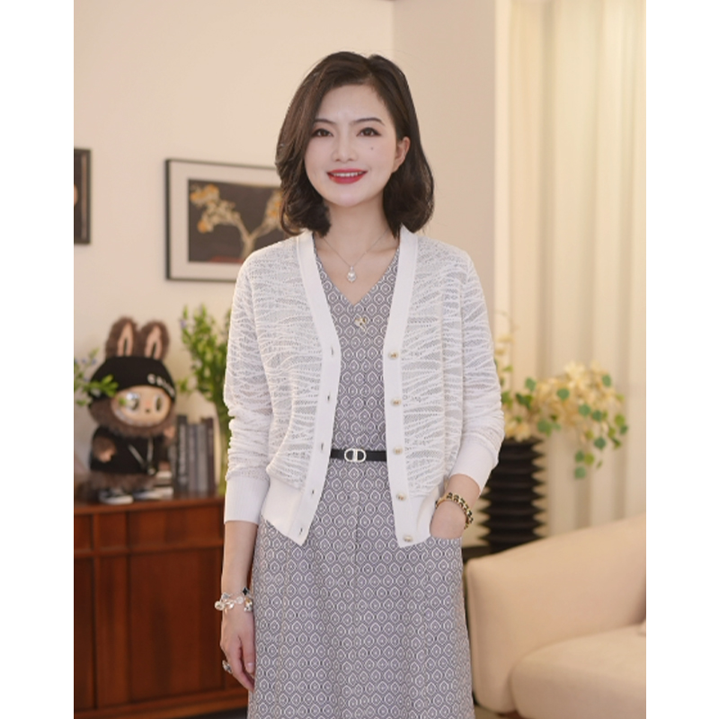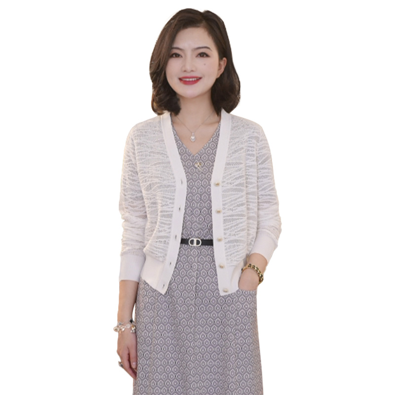 空调衫 女2025早秋薄款 针织开衫 枫竺莱赛尔天丝V领条纹镂空长袖