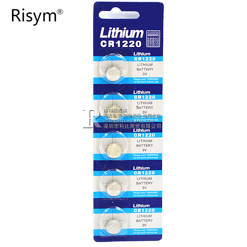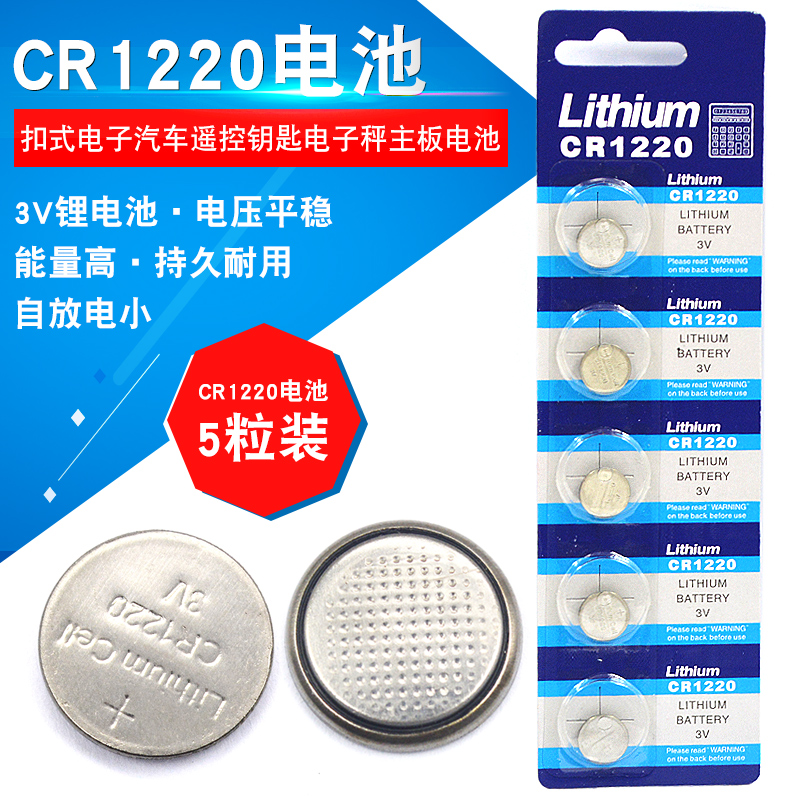 5个 CR1220 电子汽车遥控钥匙电子秤主板电池 扣式 3V纽扣电池