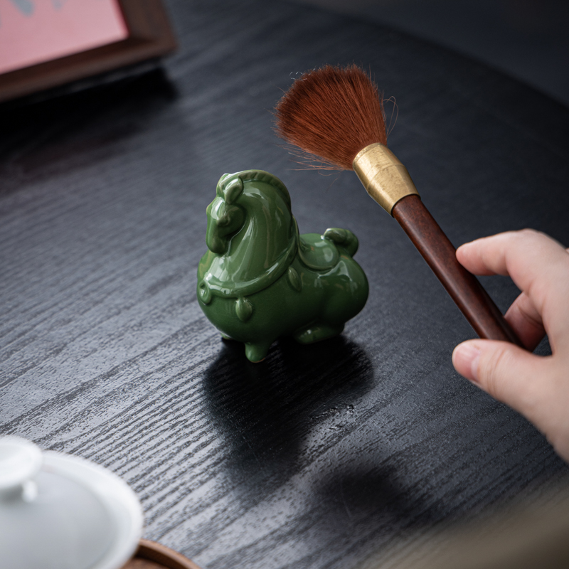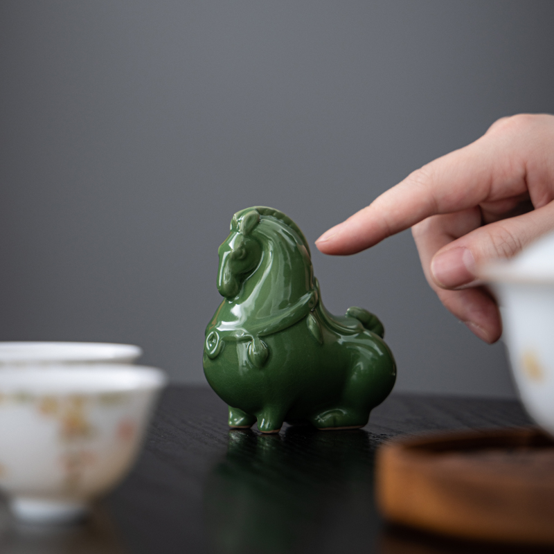 缘宿汝窑绿色唐马创意陶瓷绿马开片茶宠桌面茶玩装 饰品摆件送礼