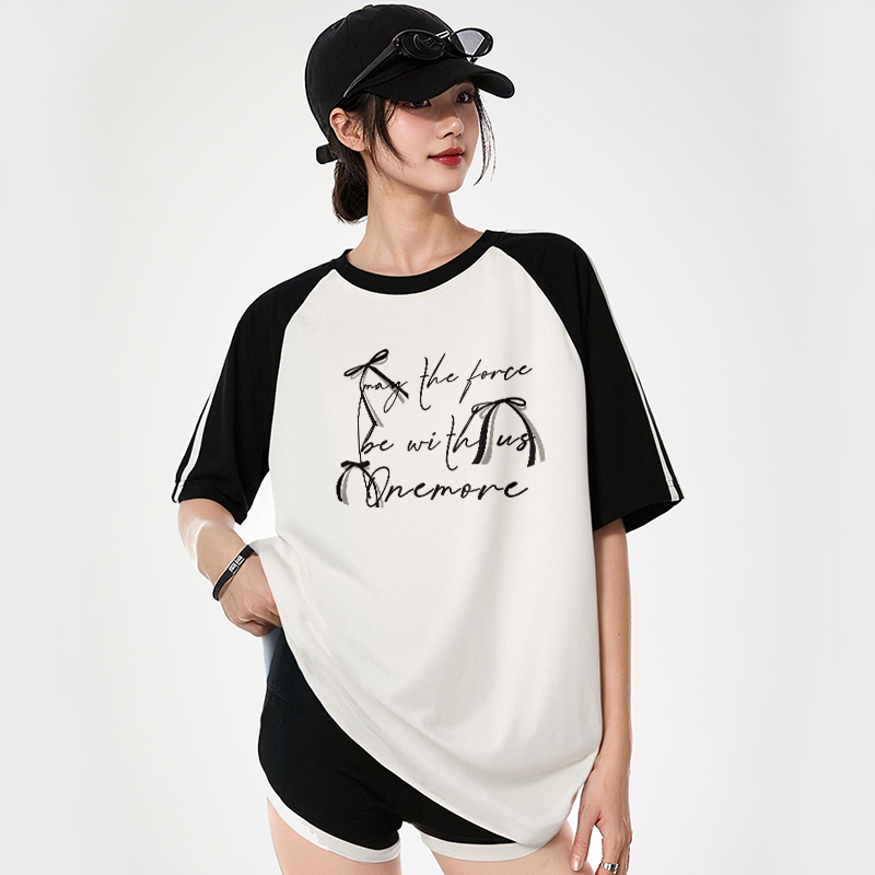 more短袖 插肩拼条半袖 t恤女2025新款 女装 设计感上衣X 文墨大码 one