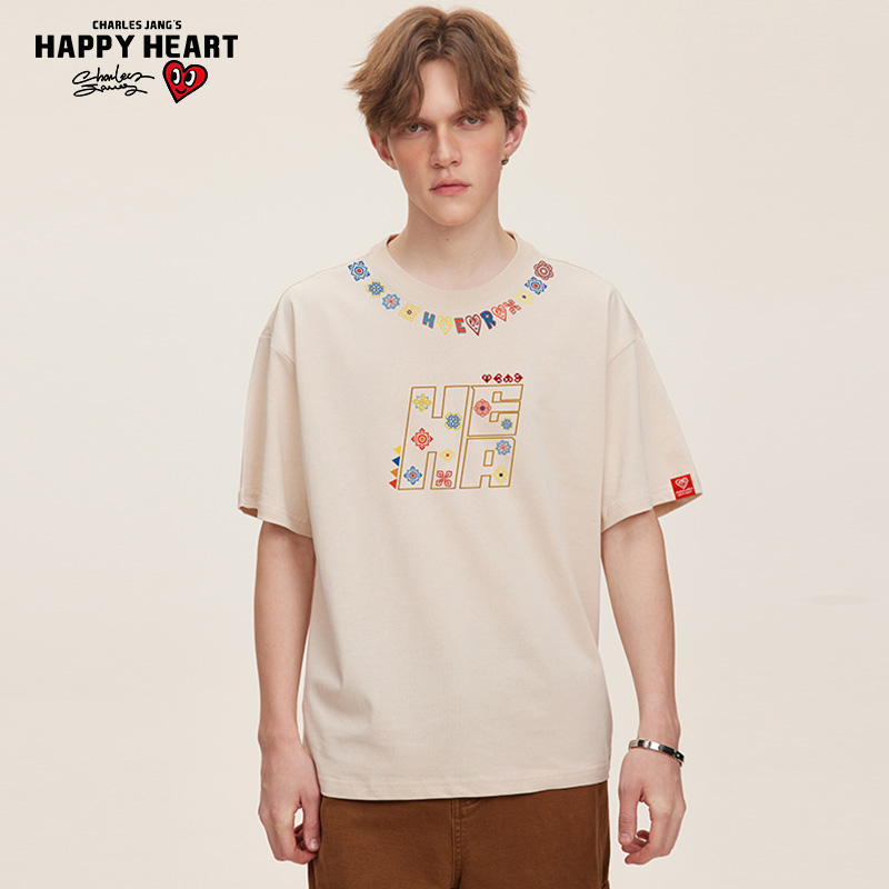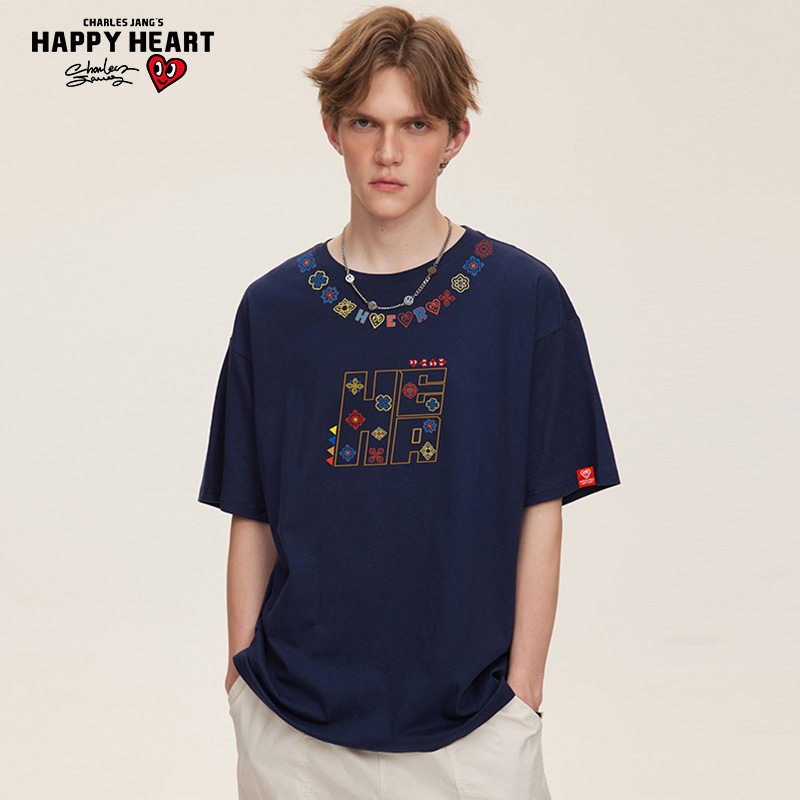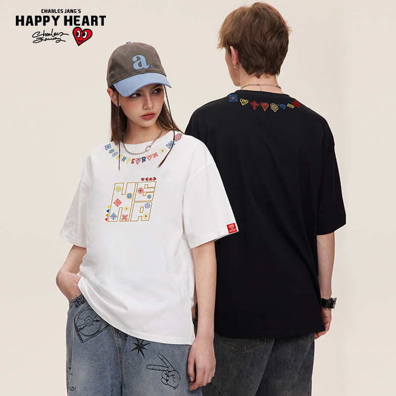 t恤男女同款 查尔斯桃心 纯棉项链印花圆领情侣短袖 美式 2025年夏季