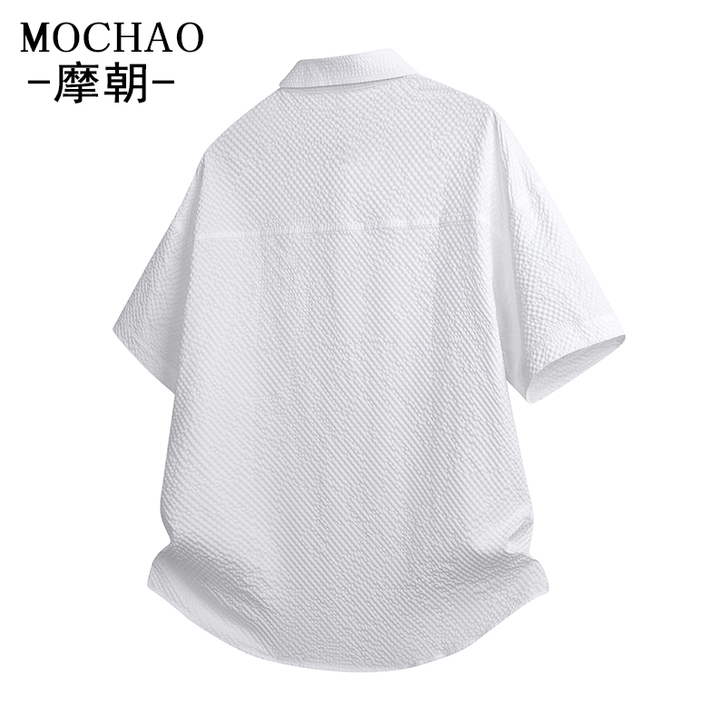 男秋高街cleanfit宽松衬衣青少年上衣 衬衫 V37美式 高级感纯白长袖
