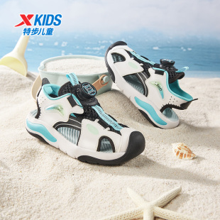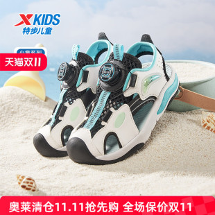 男童旋钮扣防滑耐磨沙滩鞋 特步童鞋 小童透气儿童包头凉鞋 新款 夏季
