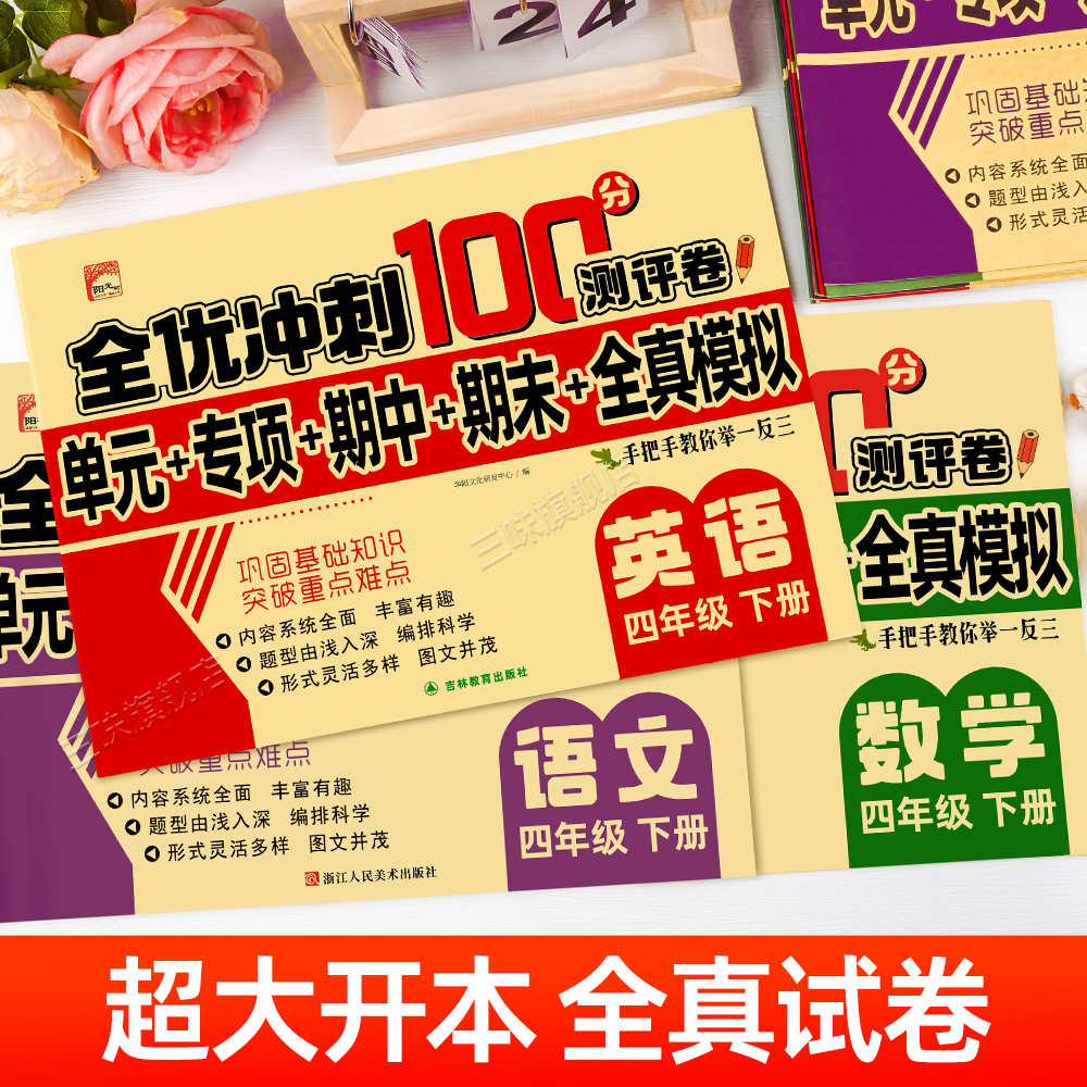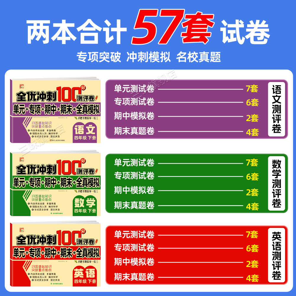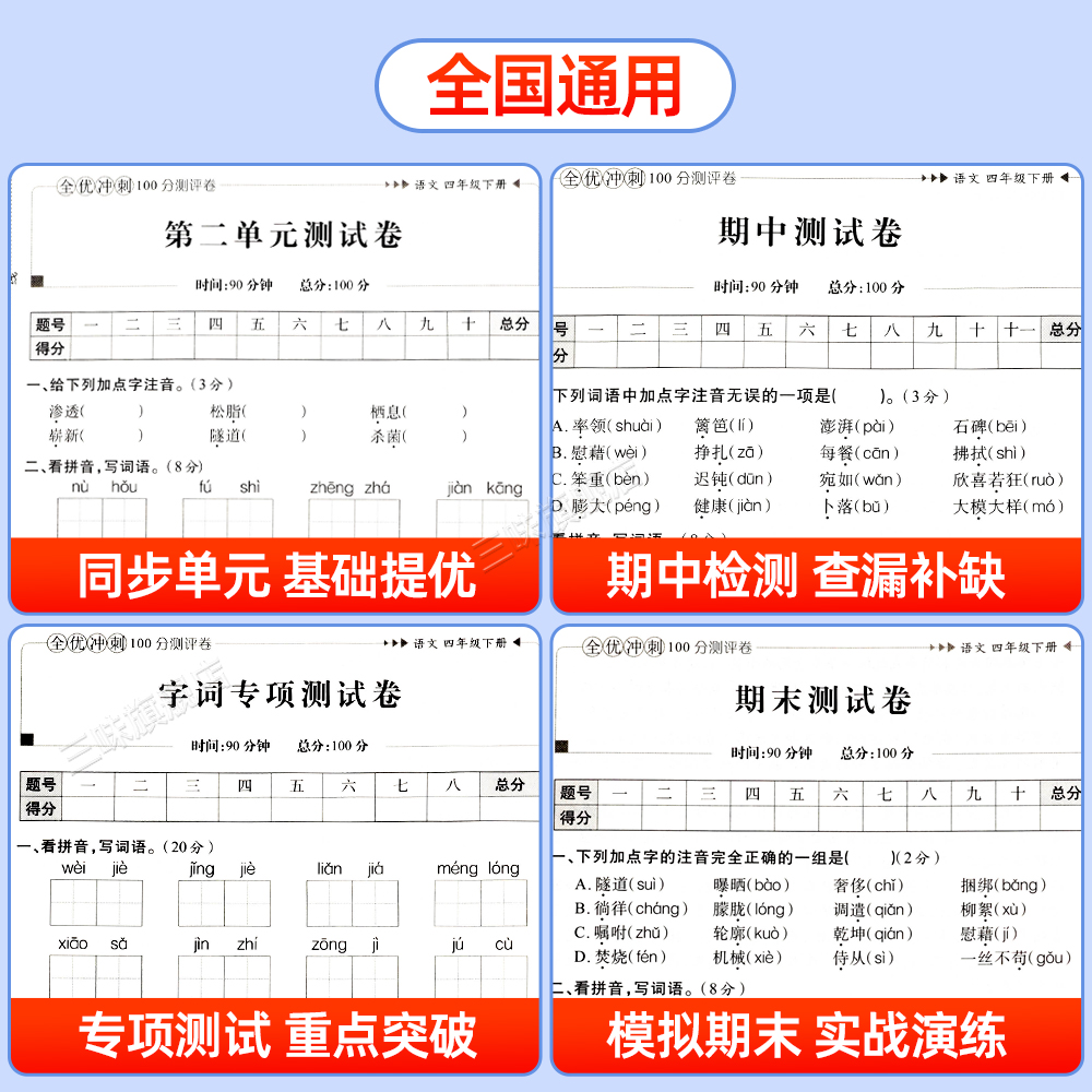 语文数学同步练习册小学卷子资料单元 全优冲刺100分测评卷人教部编版 期中期末考试卷练习题 四年级上下册试卷测试卷全套 2025新版