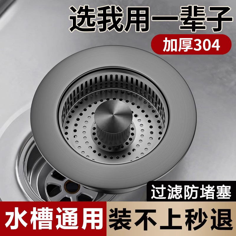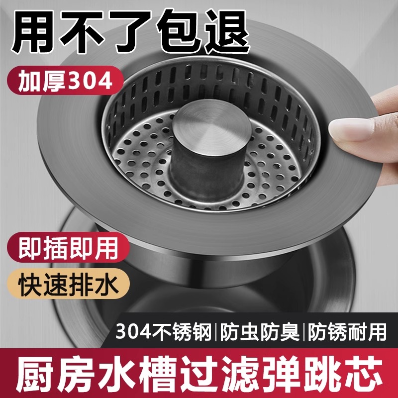 304不锈钢厨房洗菜盆漏水塞弹跳过滤网碗池水槽下水器通用封口盖