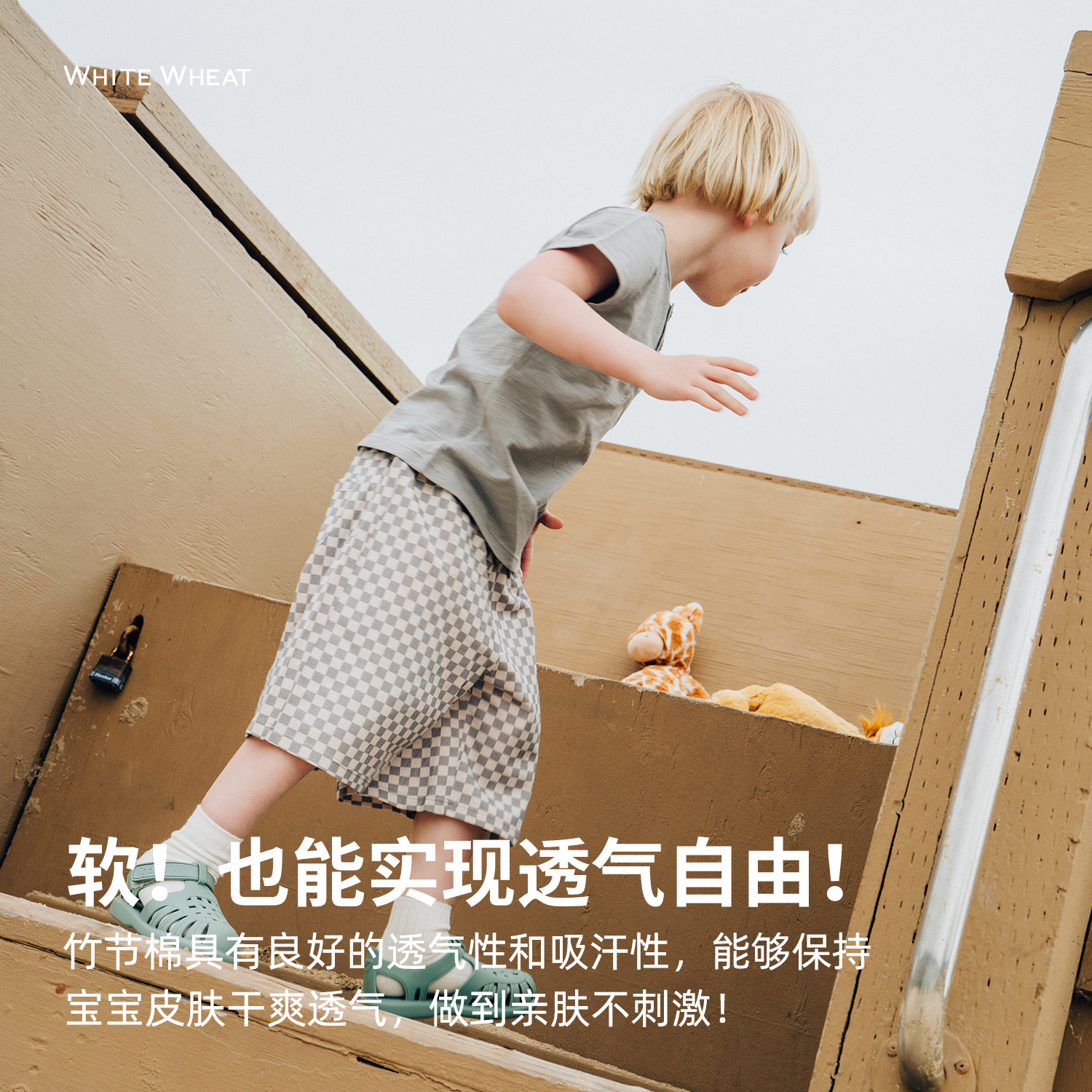 儿童男女童短袖 套装 棋盘格百搭桑蚕丝T恤 新款 whitewheat2025夏季