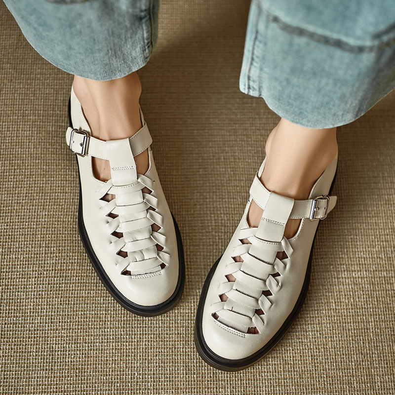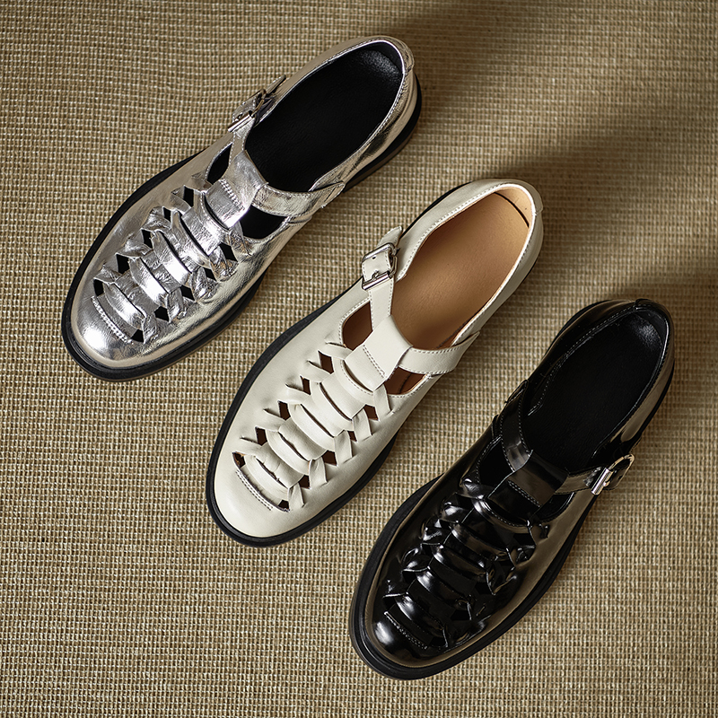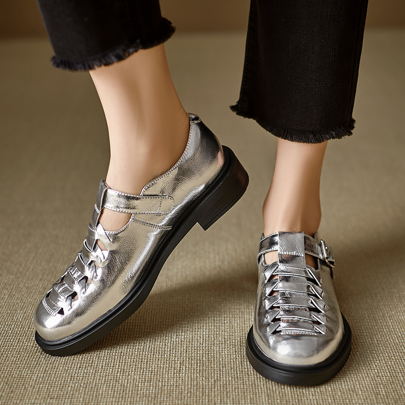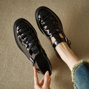 ins潮 女真皮粗跟增高休闲豆豆鞋 2025年春夏新款 西班牙Hereu乐福鞋