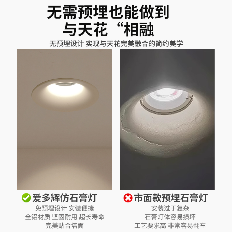 爱多辉奶油中古风射灯嵌入式 led无边框热门乳胶漆弧面彷石膏筒灯