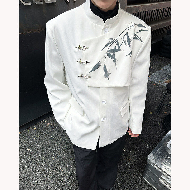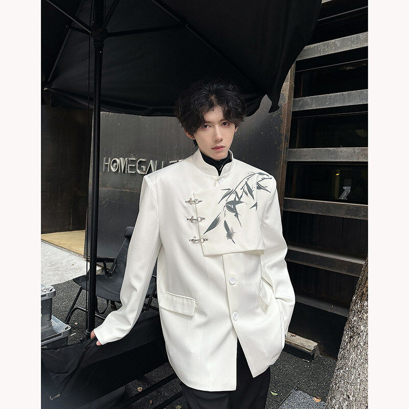西服套装 外套男飞机扣立领订婚中山唐装 国风水墨竹叶西装 新中式