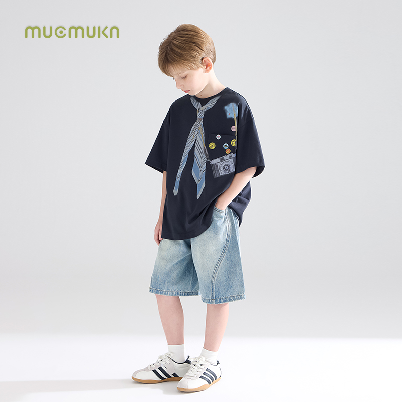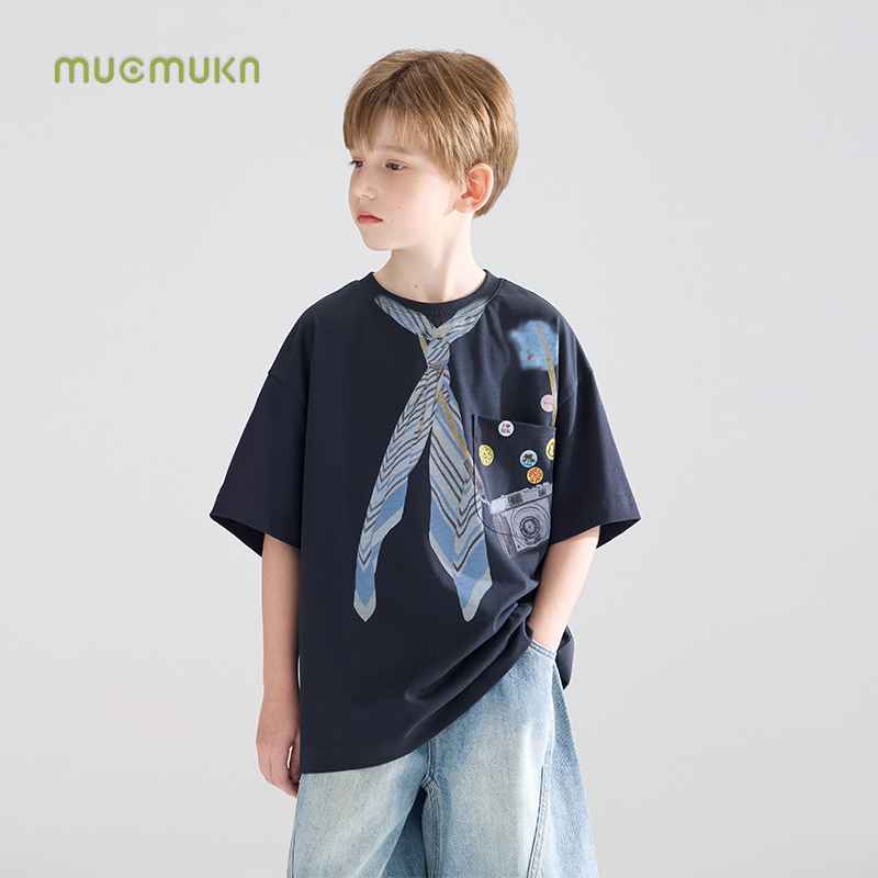 趣味领巾贴纸印花短袖 7A抑菌速干棉 T恤男童夏新款 旅行探险家