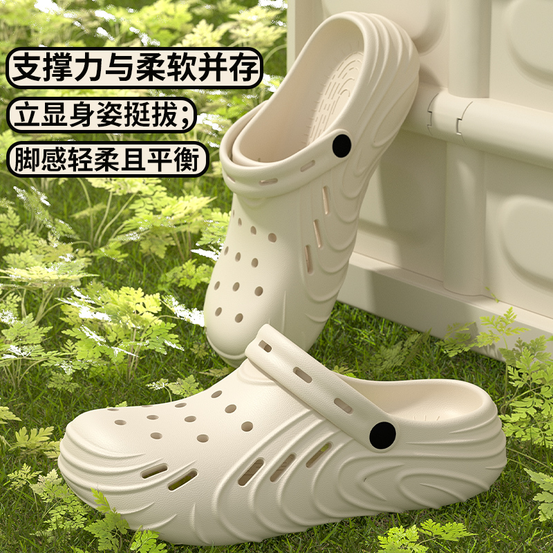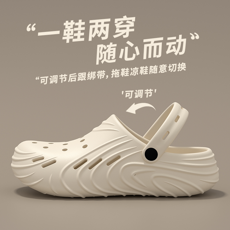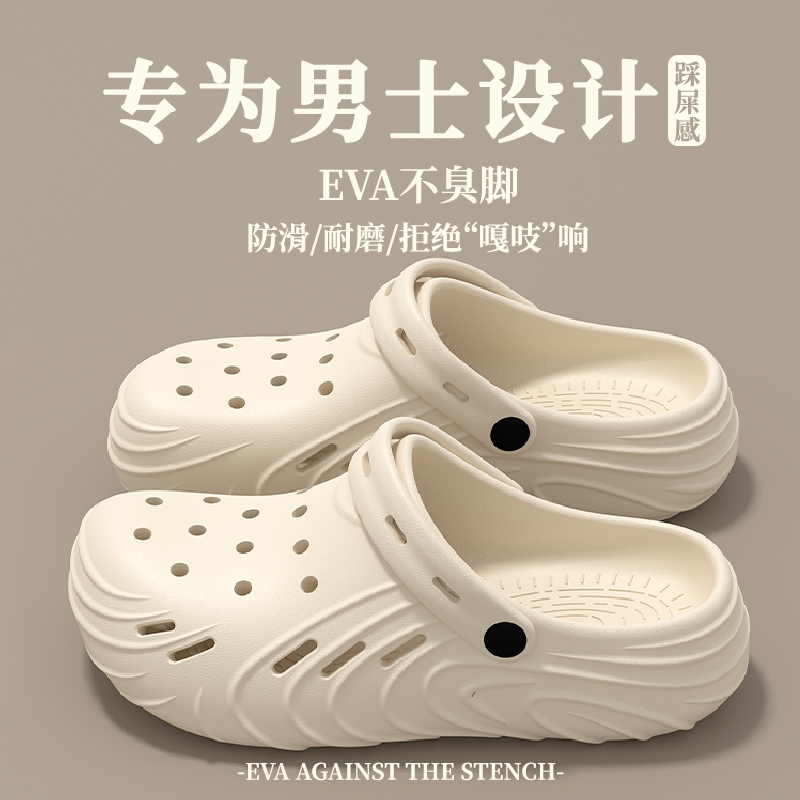 男 开车钓鱼外穿厚底防滑户外耐磨沙滩包头凉鞋 踩屎感洞洞鞋 男夏季