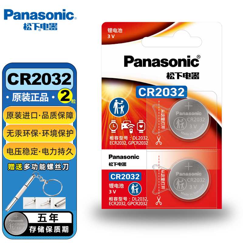 松下CR2032纽扣电池钮扣适用电子称奥迪名图大众朗逸CC迈腾速腾汽车钥匙现代朗动起亚长安本田凌派遥控器电子