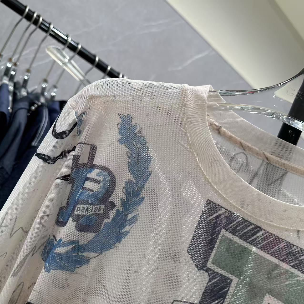 美式 T恤女宽松休闲网纱冰丝防晒上衣潮 涂鸦字母印花长袖