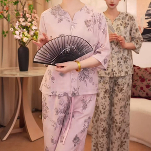 新款 时尚 气质透气亲肤七分袖 女款 棉质家居服 睡衣套装 2025年春夏季