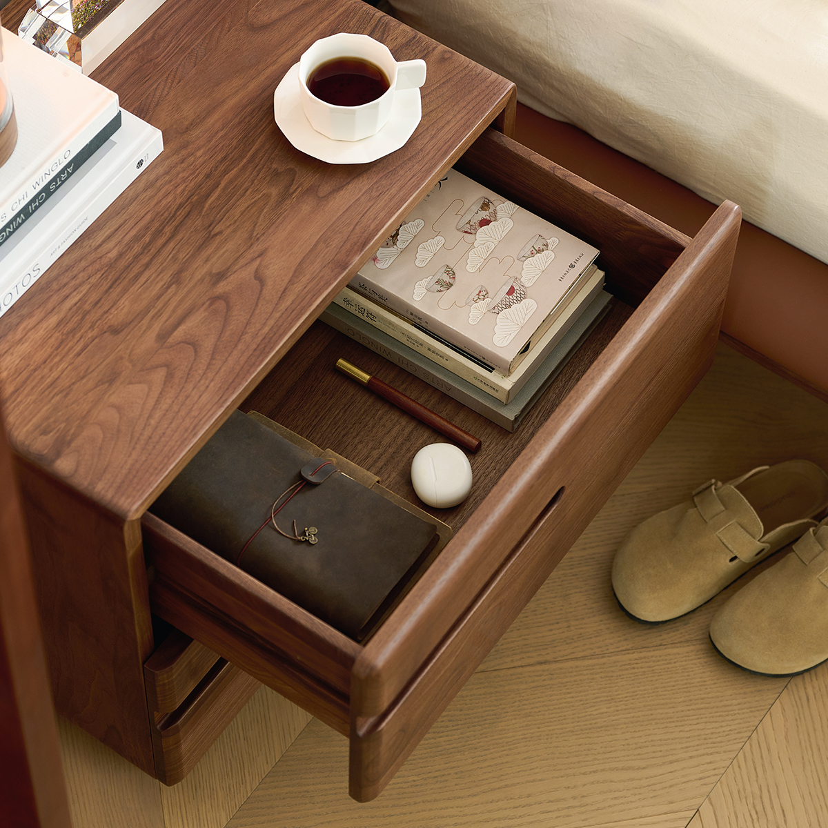 高级感实木床头柜黑色侘寂风床边柜简约现代储物卧室简易收纳柜子