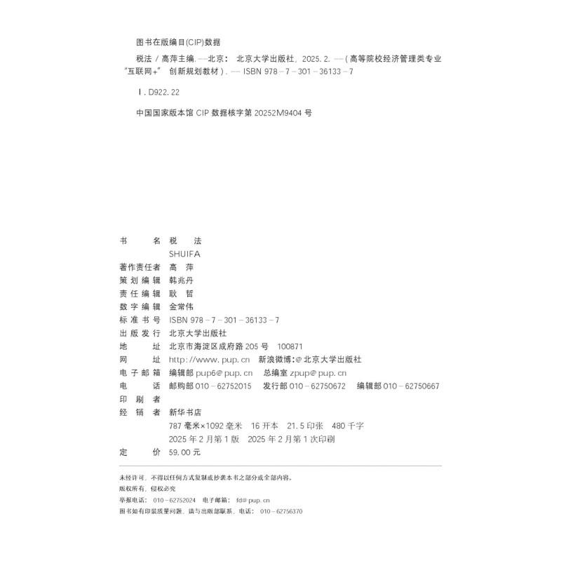 高萍 税法 高等院校经济管理类专业互联网 创新规划教材 社9787301361337 正版 北京大学出版 2025新书
