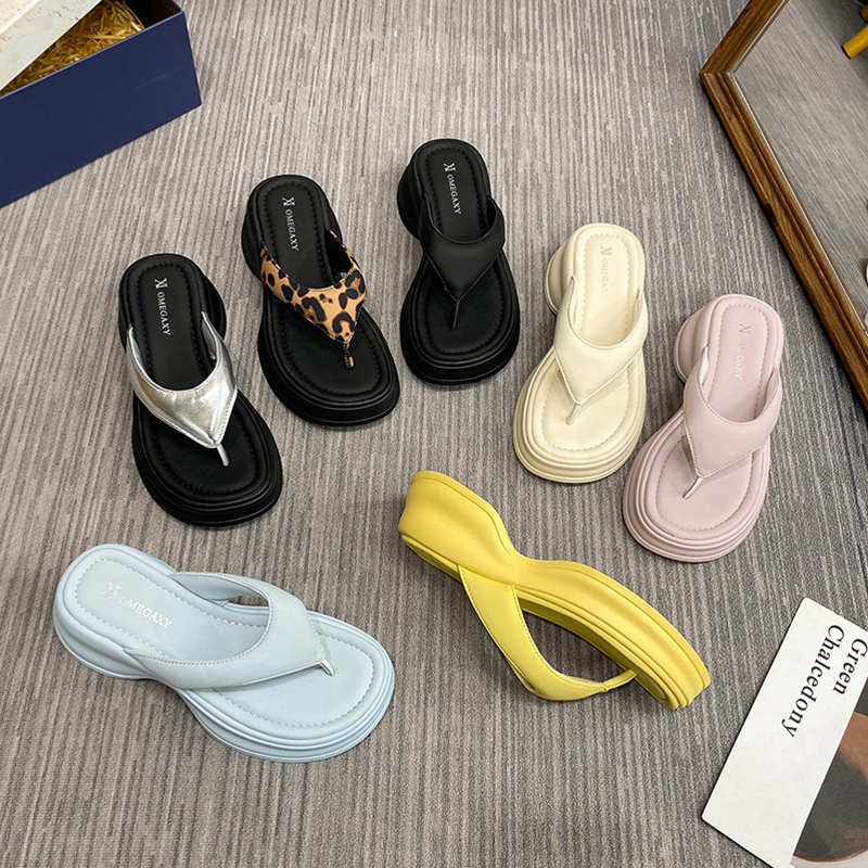 超火夹脚沙滩凉拖鞋 外穿2025新款 女夏季 网红黑色防滑厚底人字拖鞋