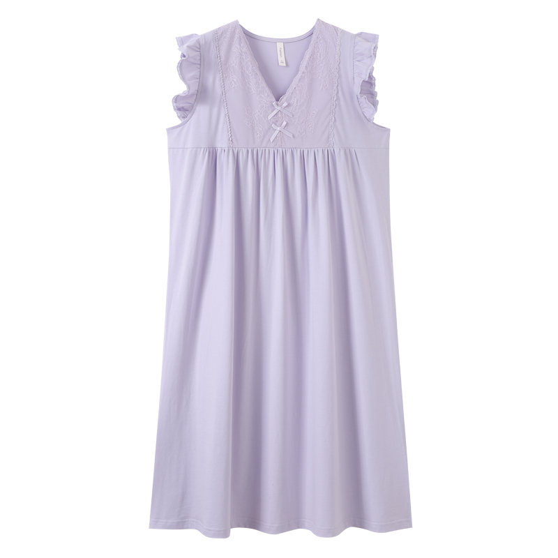 睡衣夏季 韩版 加大码 棉绸睡裙女士短袖 人造棉宽松舒适居家服 加长款