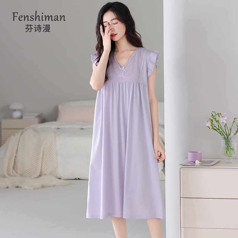 连衣裙休闲卡通睡衣女士家居服2025新款 中长款 纯棉短袖 睡裙女夏季