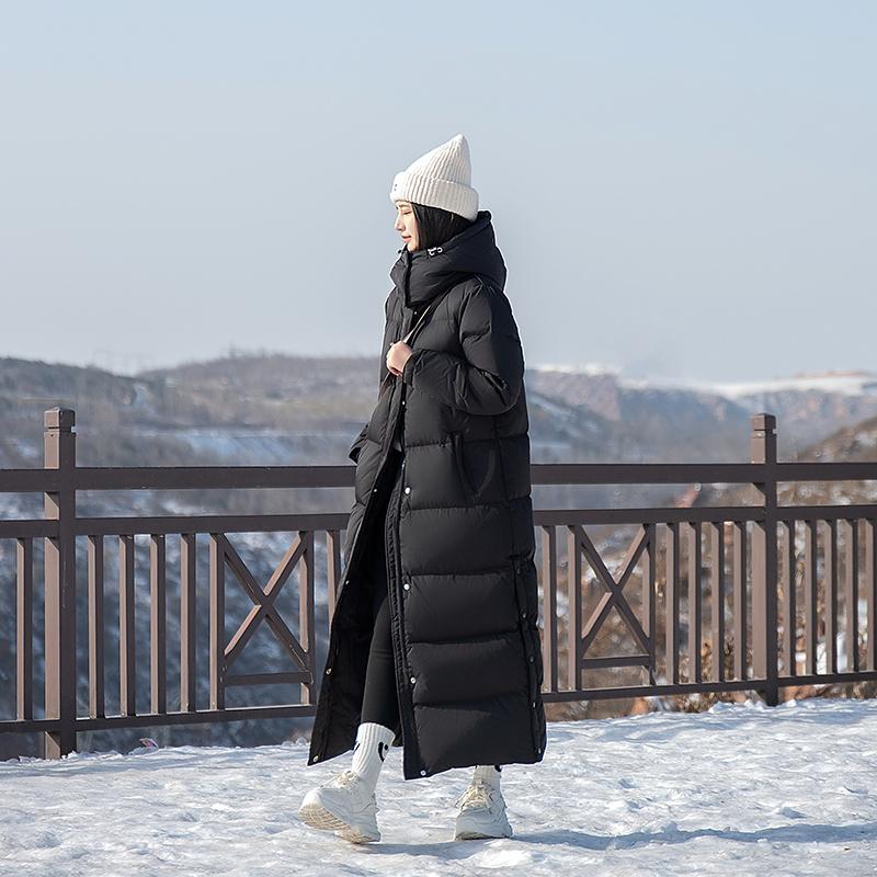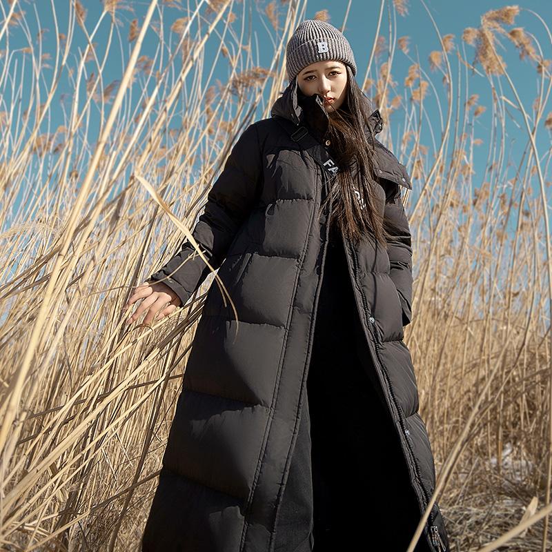 黑冰冬季 保暖抗寒加长加厚连帽鹅绒羽绒服男过膝大衣8575