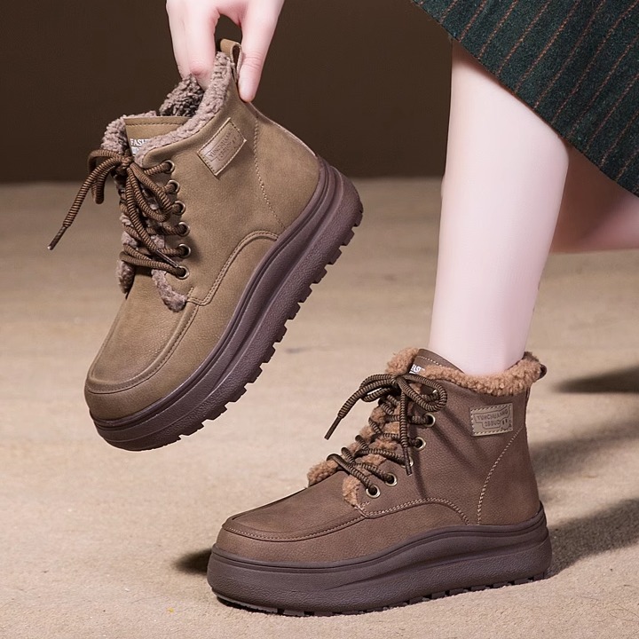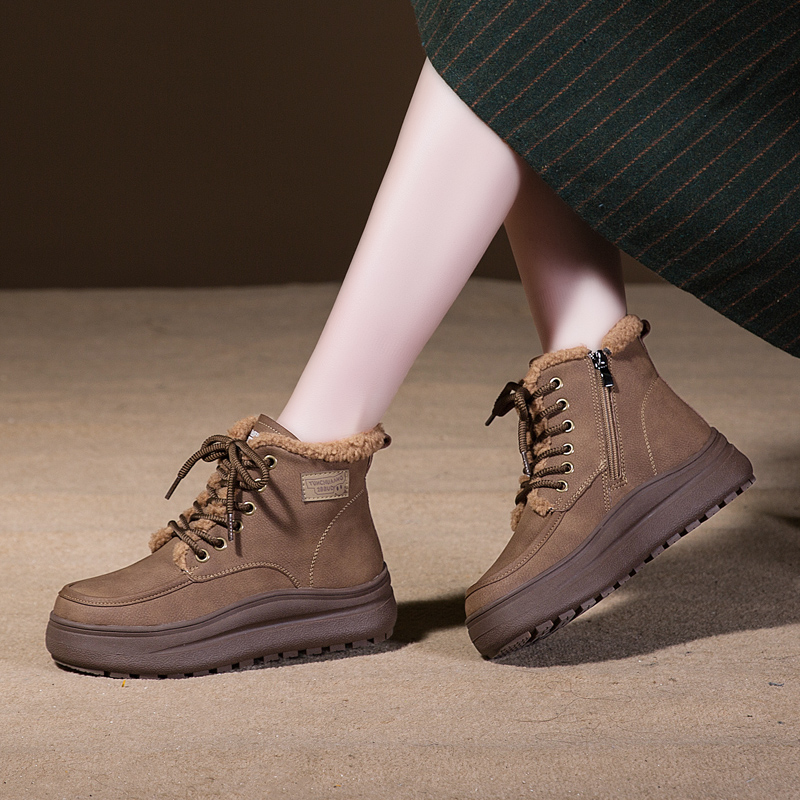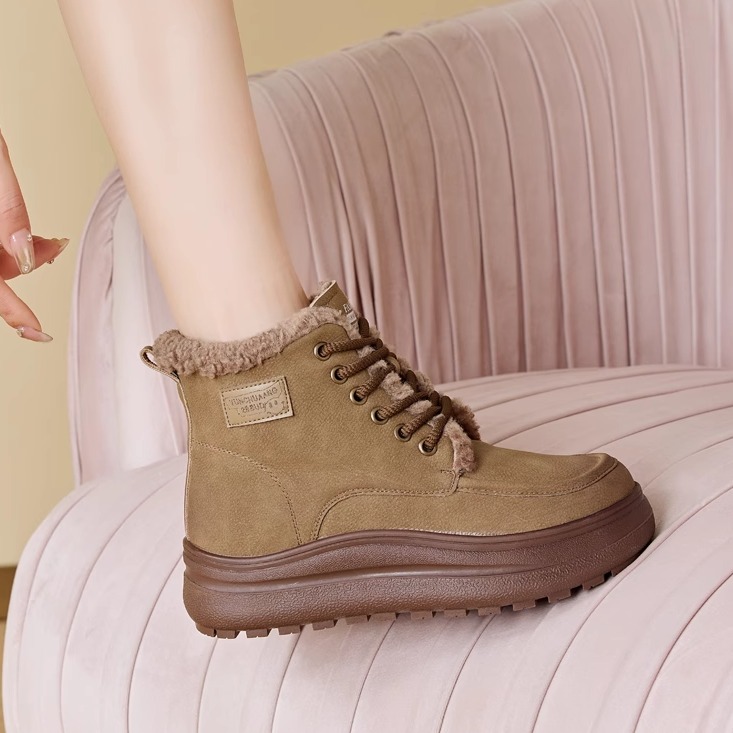 加厚保暖女鞋 短靴加绒棉鞋 厚底防滑 马丁靴2025年新款 雪地靴女冬季