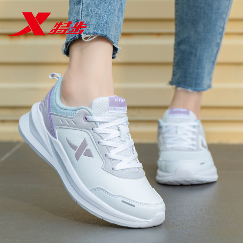 运动鞋 子官方旗舰皮面防水跑步鞋 2025新款 轻便休闲鞋 秋季 特步女鞋