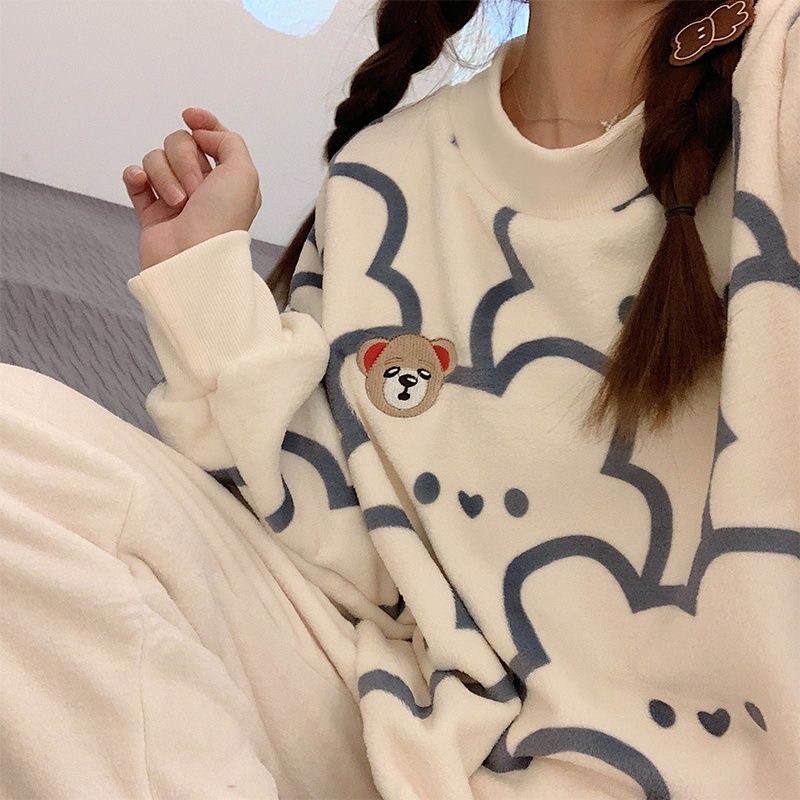 海岛绒可外穿家居服 简约薄款 睡衣女秋冬季 保暖珊瑚绒女士睡衣套装
