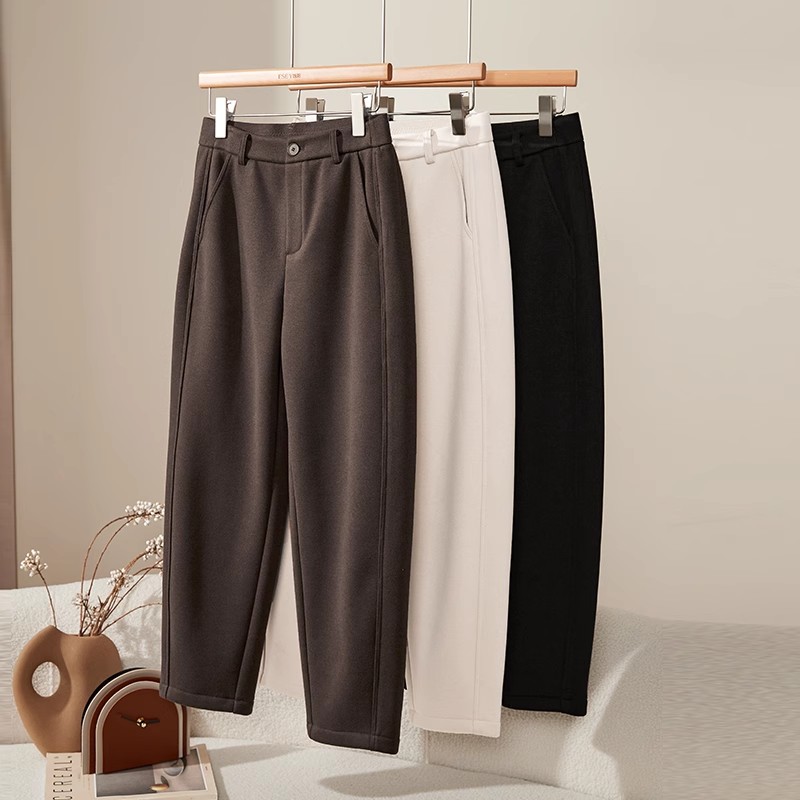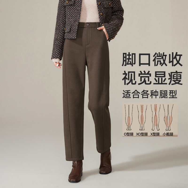 休闲裤 宽松遮肉弯刀裤 女加绒加厚冬季 香蕉裤 新款 逸阳九分镰刀裤