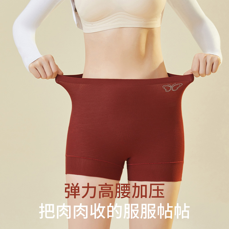 2025夏季 三合一平角裤 女防走光冰丝无痕收腹内裤 猫人粉底液安全裤