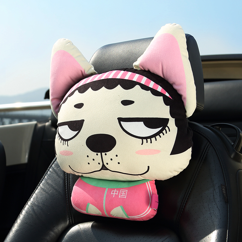 卡里努努呜呜狗卡通可爱汽头枕护颈枕玩偶车用枕头靠枕汽车内饰