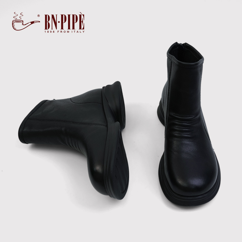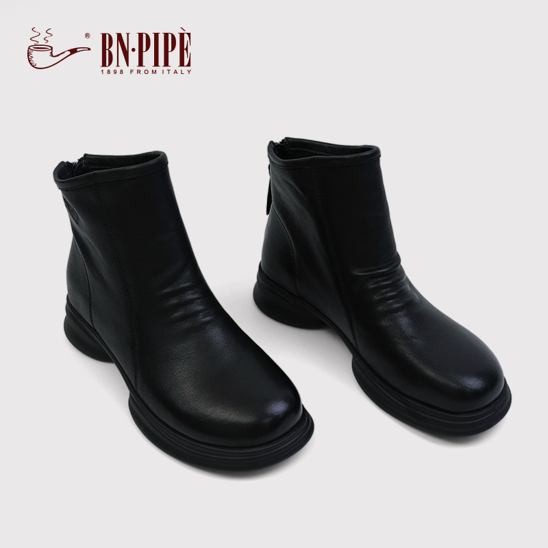 女 妈妈软皮短靴女鞋 百年烟斗真皮马丁靴秋冬新款 舒适低跟黑色皮鞋