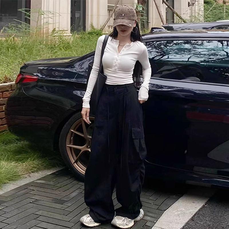 裤 镰刀裤 百搭欧货美式 设计感女士高腰工装 宽松显瘦时尚 阔腿工装