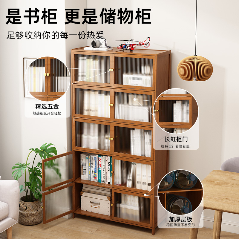 实木书柜家用客厅展示柜可定制柜子中古风带玻璃门单个书柜储物柜