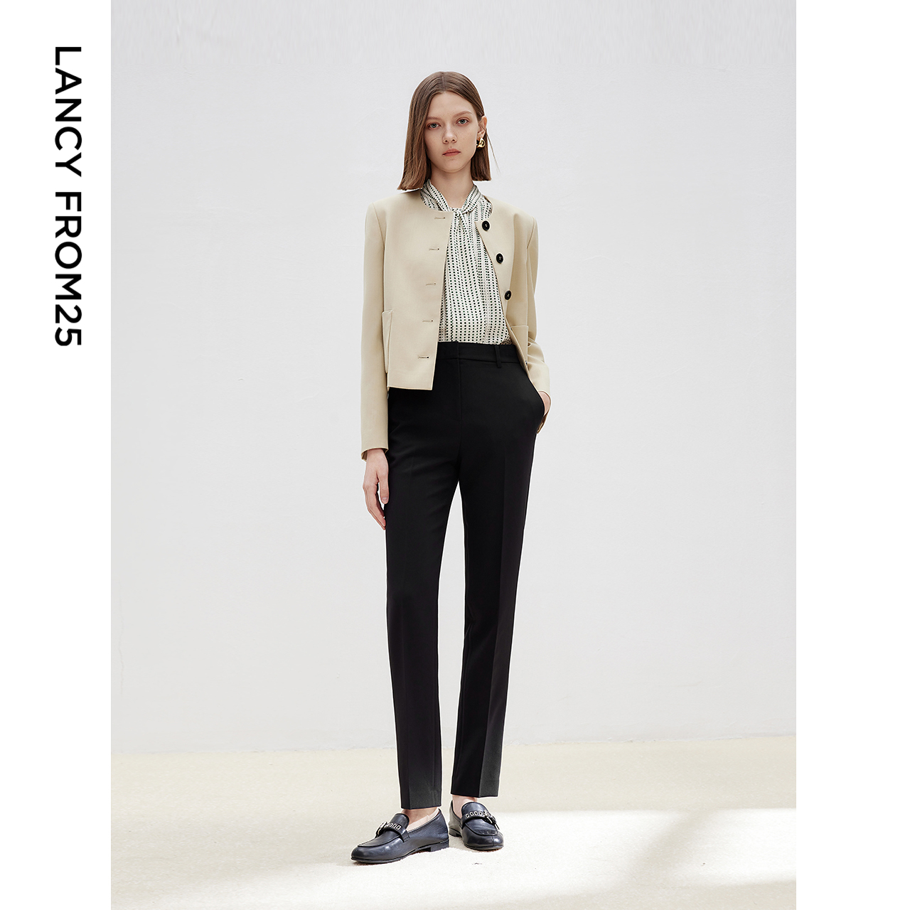 新款 裤 高级感气质黑色直筒西裤 通勤西装 女 职业长裤 朗姿2025年春季