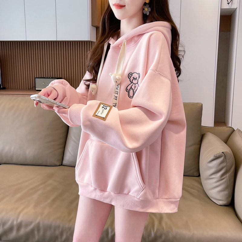 女装 连帽卫衣女2024新款 宽松大码 韩版 加绒加厚学生百搭外套 秋冬季