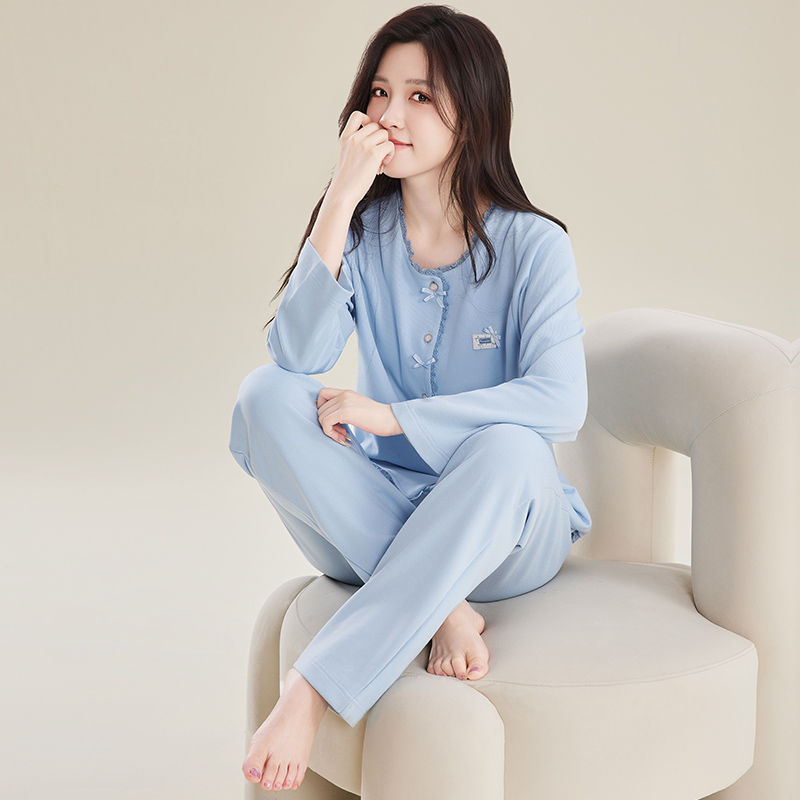 家居服女款 纯棉长袖 夏季 薄款 家乐芬睡衣女士春秋款 空调服套装 秋季