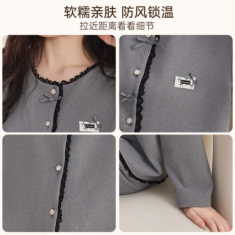 可外穿秋冬款 松山棉店小暖羊罗纹家居服套装 睡衣女带胸垫情侣长袖