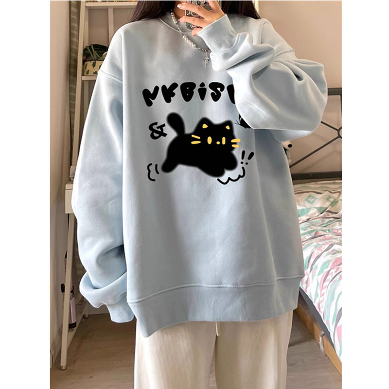 无帽圆领卫衣女2025新款 小个子宽松韩系慵懒风加绒加厚上衣 秋冬季