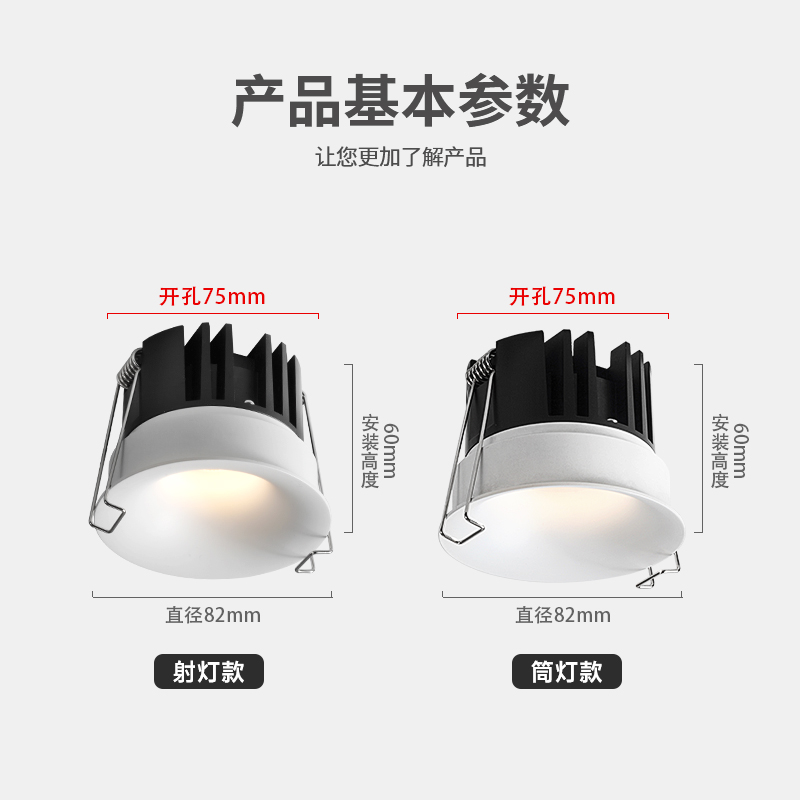 全铝无边框射灯嵌入式 筒灯仿石膏灯超薄无缝弧面非预埋防眩客厅