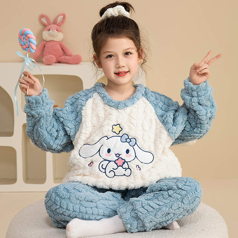 女童睡衣加厚春秋薄绒2024新款 初中生珊瑚绒女孩小企鹅儿童家居服