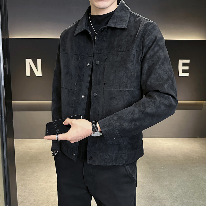 复古廓形翻领机车夹克PU皮衣美拉德外套 美式 PANMAX大码 潮牌男装