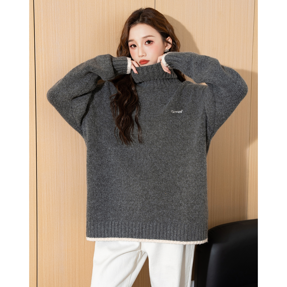 毛衣女2025高领灰色慵懒风高级感小个子宽松毛线衫 唐狮春季 新款