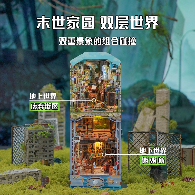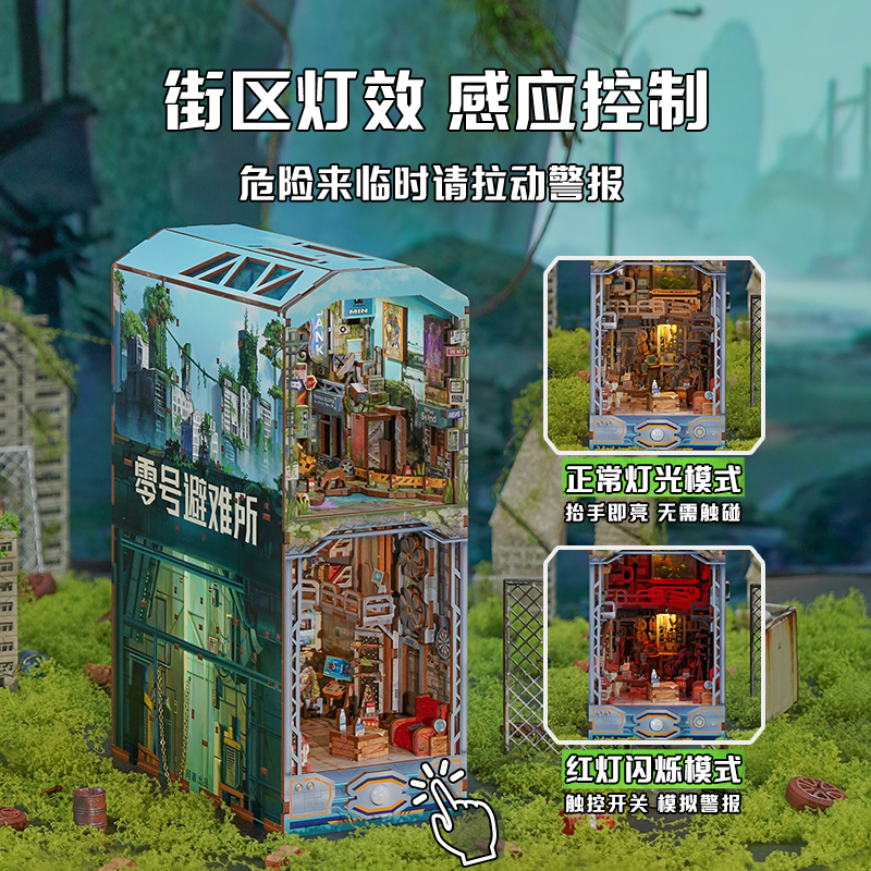 同趣拼装 感应书立零号避难所diy手工小屋微缩模型积木生日礼物男