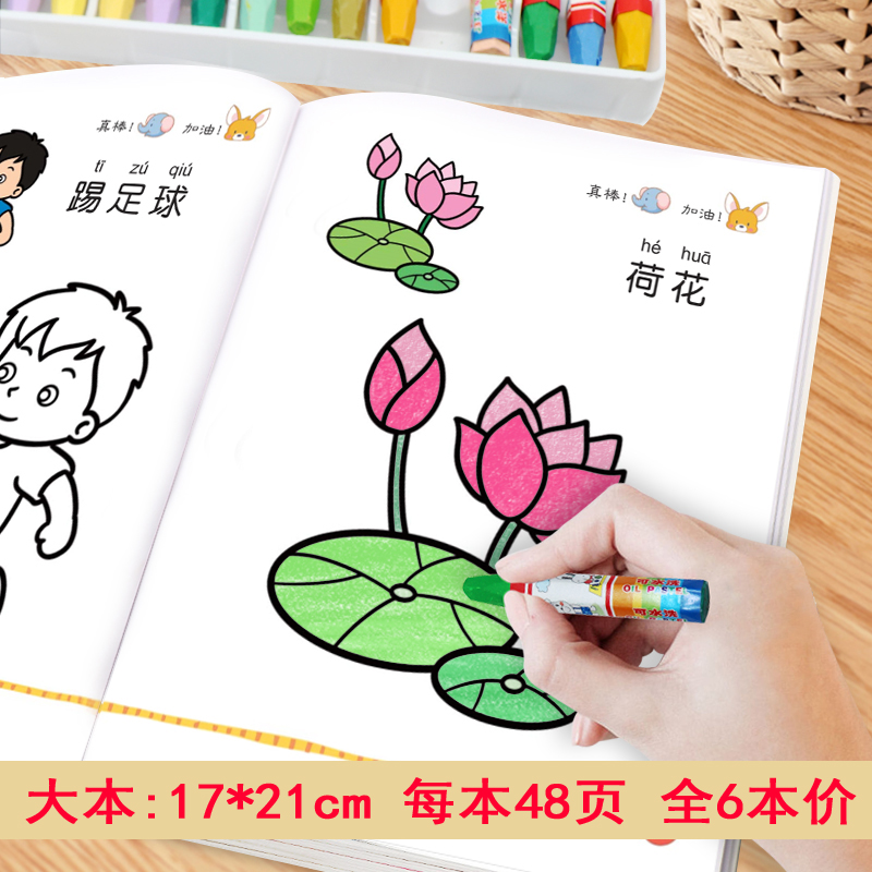简笔画蜡笔水彩笔铅笔可涂不透色幼儿早教启蒙认知专注力猴子思维 6岁幼儿园涂鸦填色绘本图画绘画册套装 儿童画画本宝宝涂色书2