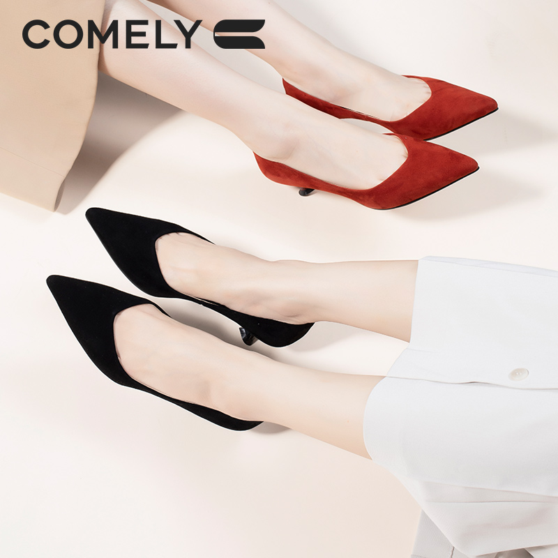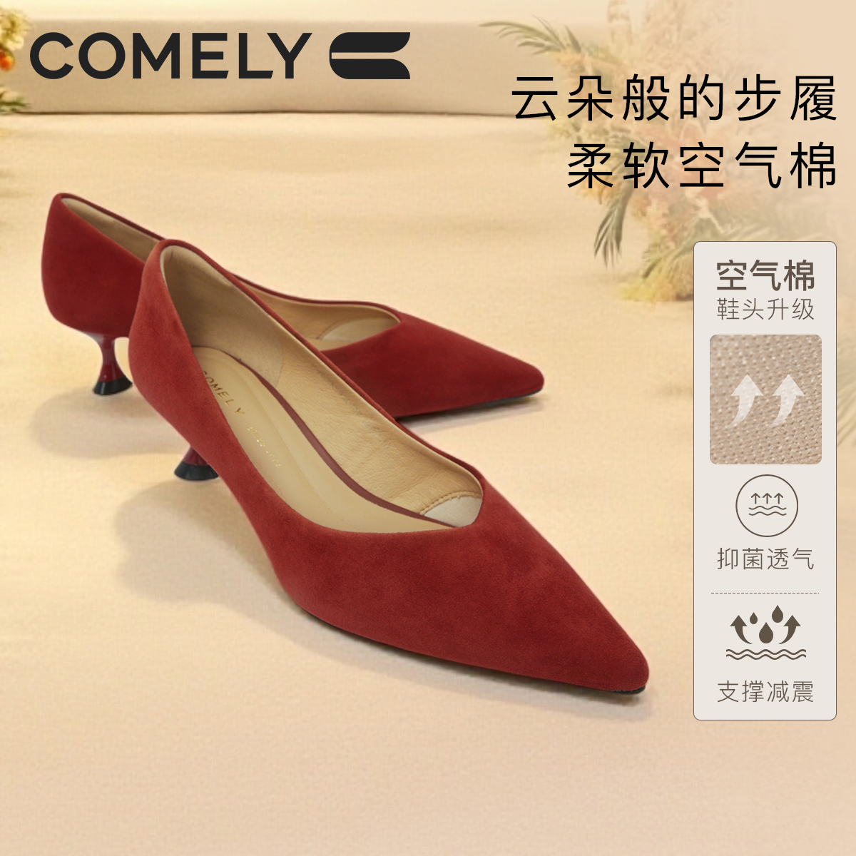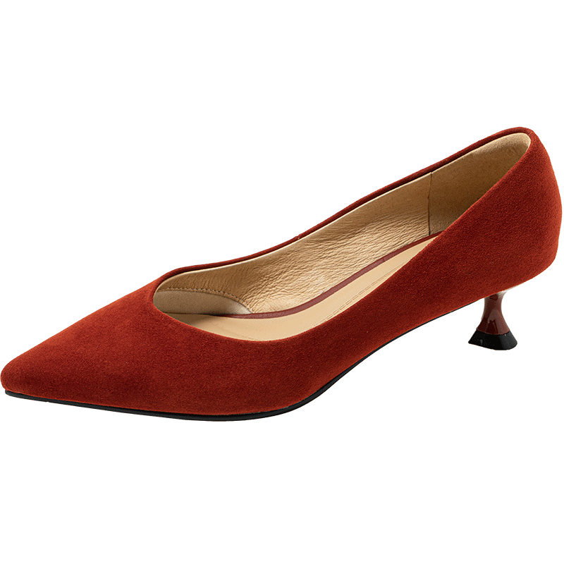 红色鞋 康莉尖头高跟鞋 新娘鞋 婚鞋 子 女羊皮气质小猫跟黑色浅口单鞋