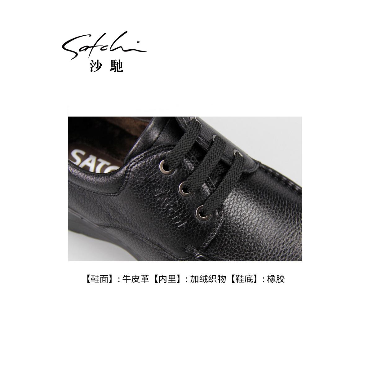 商务休闲鞋 冬季 男士 轻便系带保暖真皮棉鞋 男 沙驰男鞋 皮鞋 加绒皮鞋